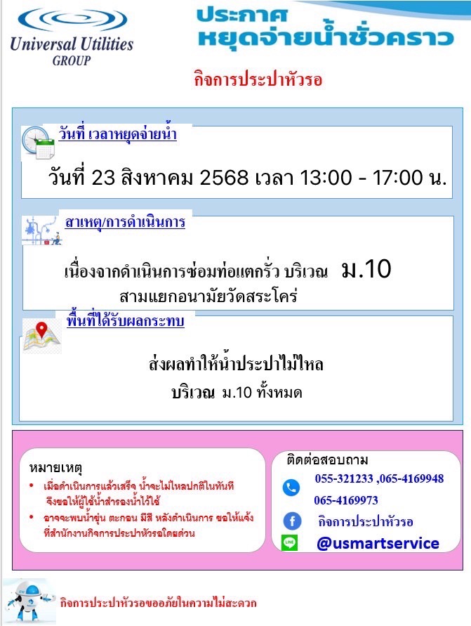 🚨 ประกาศท่อแตกฉุกเฉิน 🚨