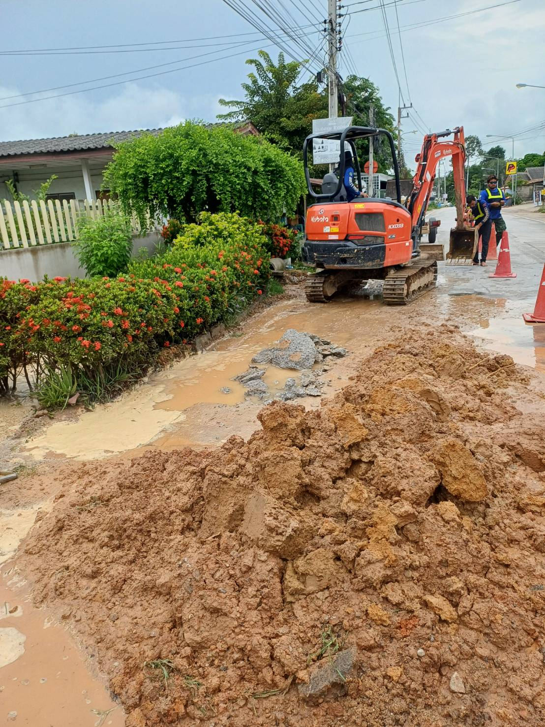 ผู้รับเหมาทำถนนขุดท่อจ่ายน้ำประปาแตก