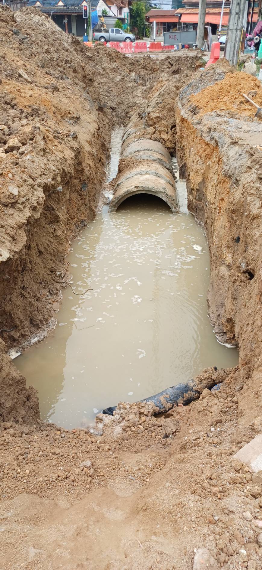 เนื่องจากเทศบาลปรับปรุงภูมิทัศน์ขุดคลอง ม.9 โดนท่อประปาขนาด 4 นิ้วแตก